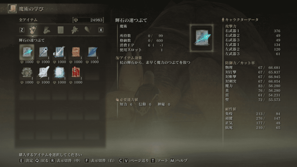 コンバージェンスではスクロールや祈祷書が存在せず、ミリエルは各素性の初期魔術・祈祷のみを販売している模様