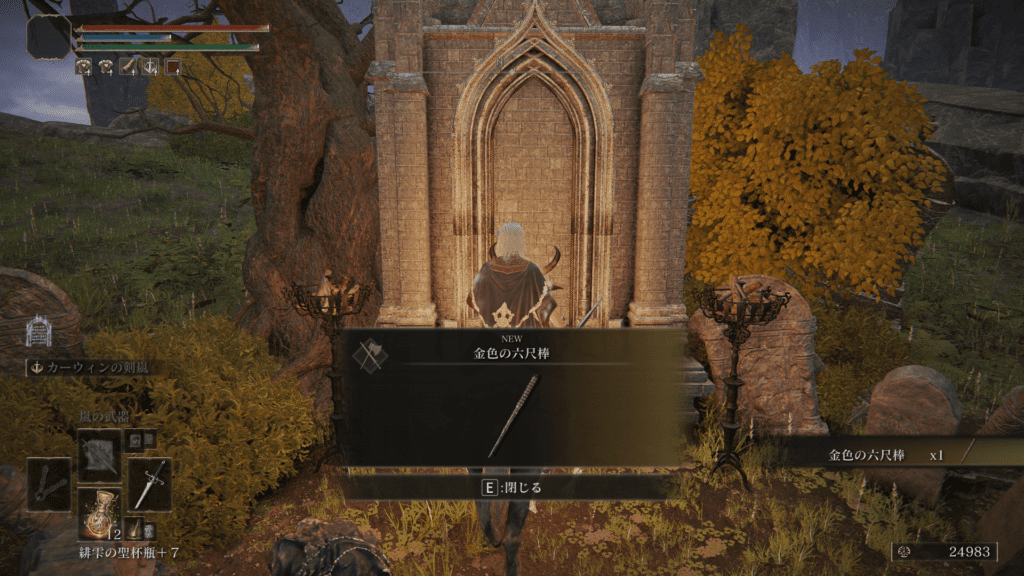 「結びの教会」北の墓地で、コンバージェンスオリジナル武器「金色の六尺棒」をゲット