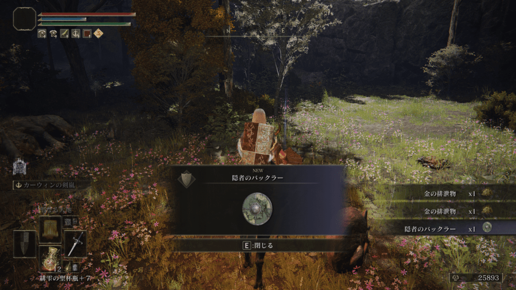続けてコンバージェンスオリジナルの小盾「隠者のバックラー」も回収