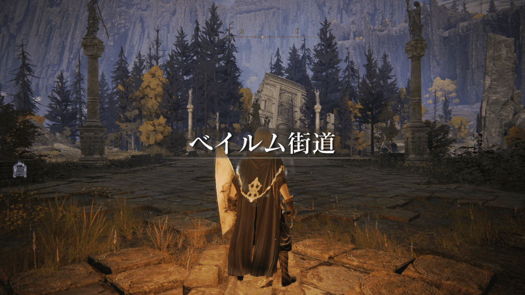 学院の紋章からワープして、ベイルム街道の南終点へ