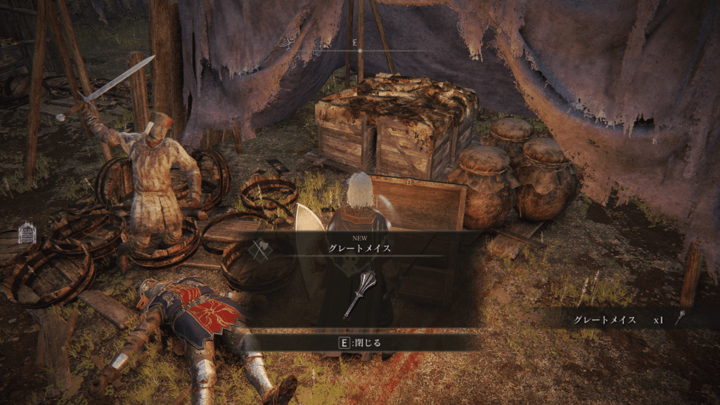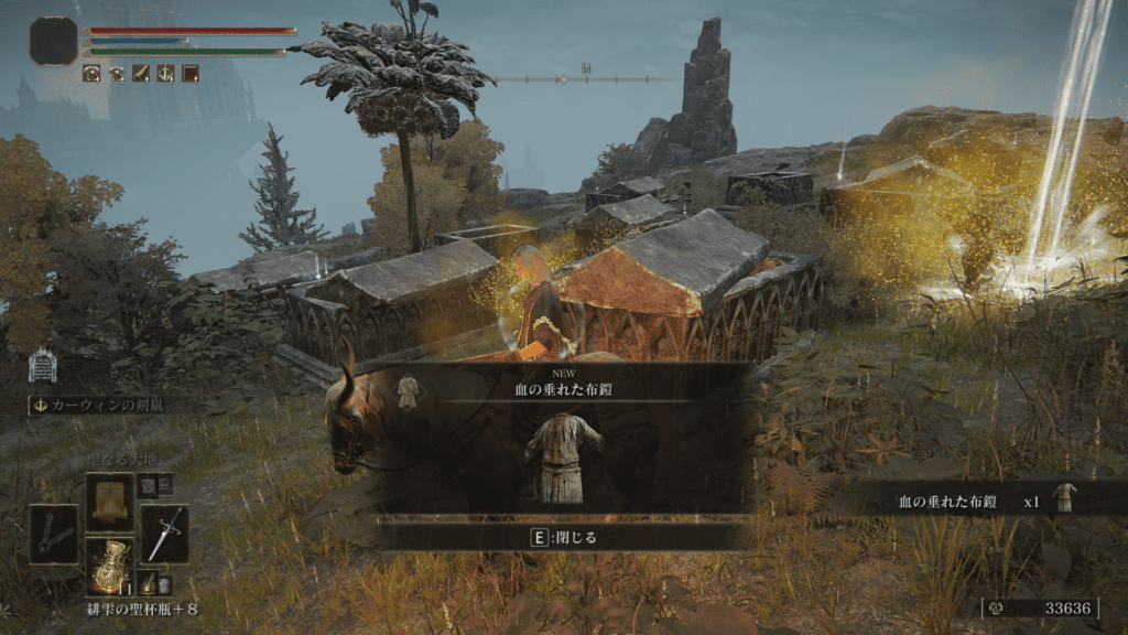 そのすぐ近くの墓地で「血の垂れた布鎧」を回収