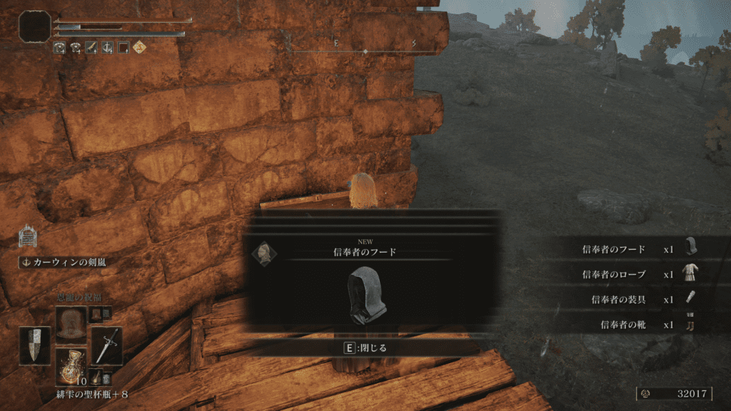 ここで「信奉者」装備一式を回収