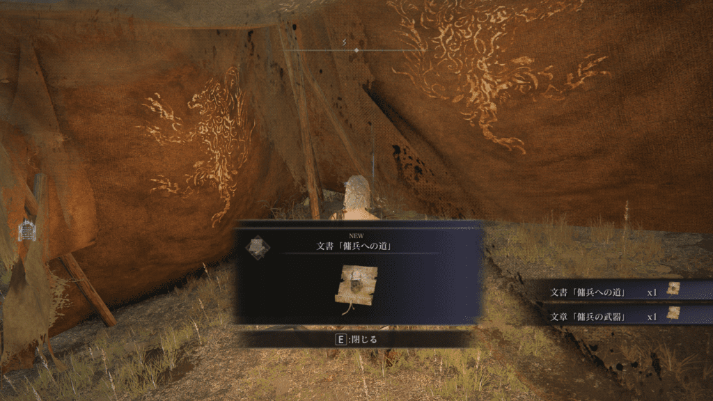 手前の小さな野営地では素性「傭兵」の初期アイテムを回収