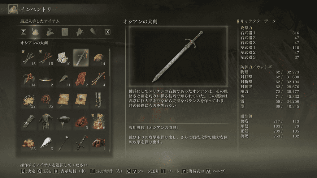 ただ筋力要求が20なので、技量ブッパの自分では両手持ちにしても使えず…