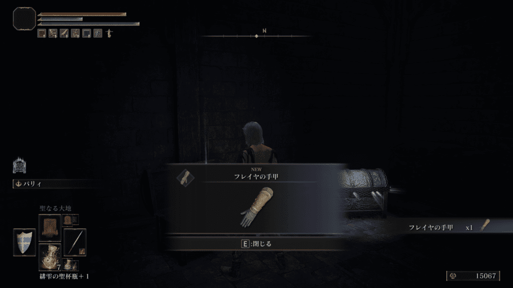 2つある宝箱の中、1つはバニラと同じく「カタール」だったけど、もう1つはDLC装備の「フレイヤの手甲」