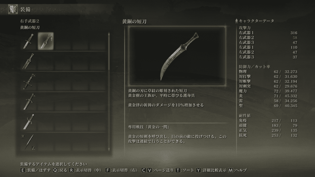 もらえるアイテムはバニラ同様に「黄銅の短刀」だけど、あれ?専用戦技?