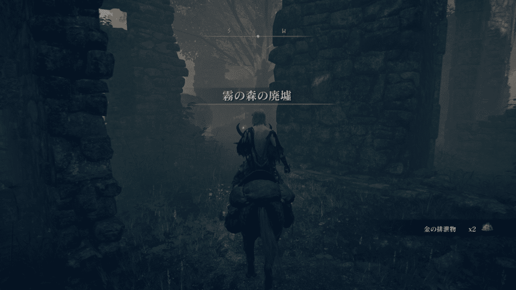 まず転送門で霧の森へ戻り、ちょっと寄り道して「霧の森の廃墟」