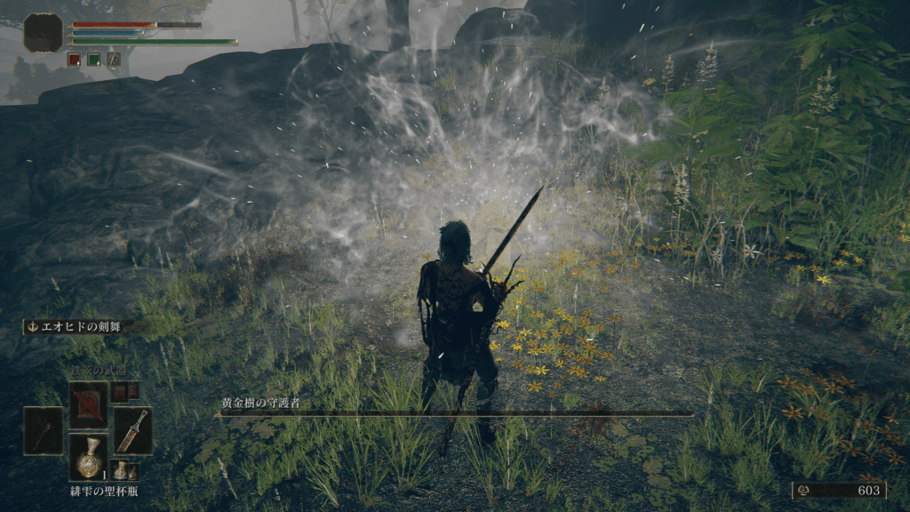 「黄金樹の守護者」は守人とモーションも似てて、攻撃後も後隙だらけなのでぶっちゃけ弱かった…