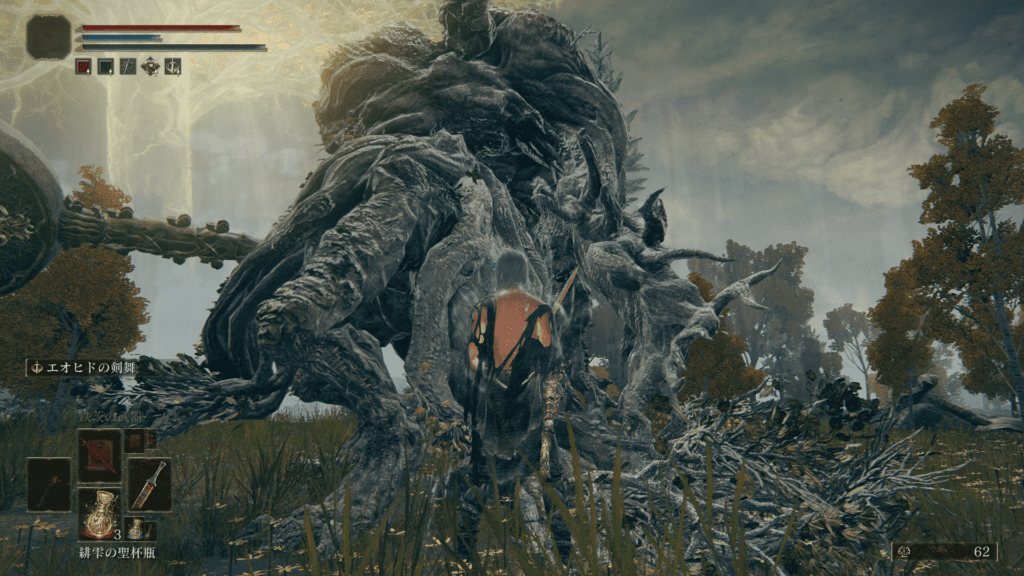 「接ぎ木の貴公子」は盾か強靭削りの強い武器がないと相手の行動待ちになって長期戦になりがち、面倒なので一旦スルー