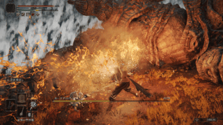 開幕不意打ちの突きをやってきたり、「マルギット」やダクソ3のゲール爺のような視点が上を向くくらい高いジャンプからの攻撃をやってきたりと、初見では強ボス感があったけど