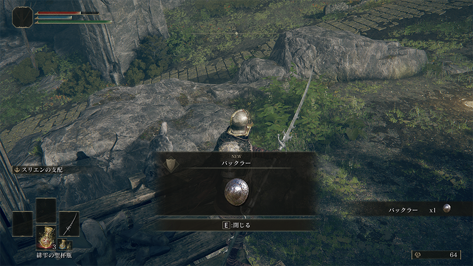 そのまま「嵐丘のボロ家」で「バックラー」を回収