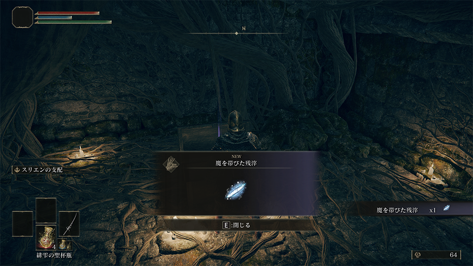 ここのボス「カーリア・ゴーレム」を倒し、霊薬の元となる「残滓」を入手