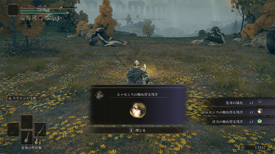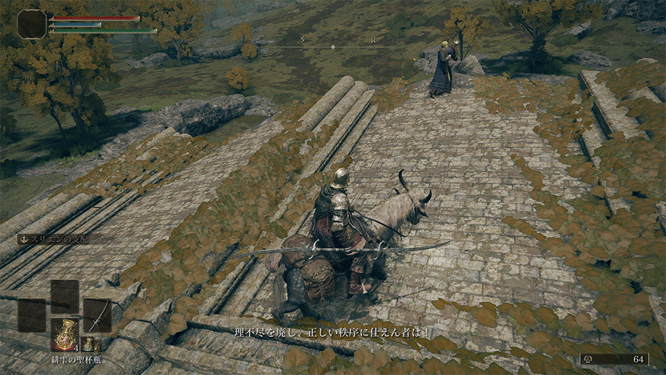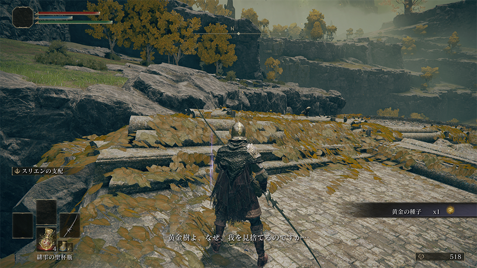 なのでまずは極力戦闘を控えながら、狭間の地を駆け抜けるためのレベル上げ&装備集めから始めていきます