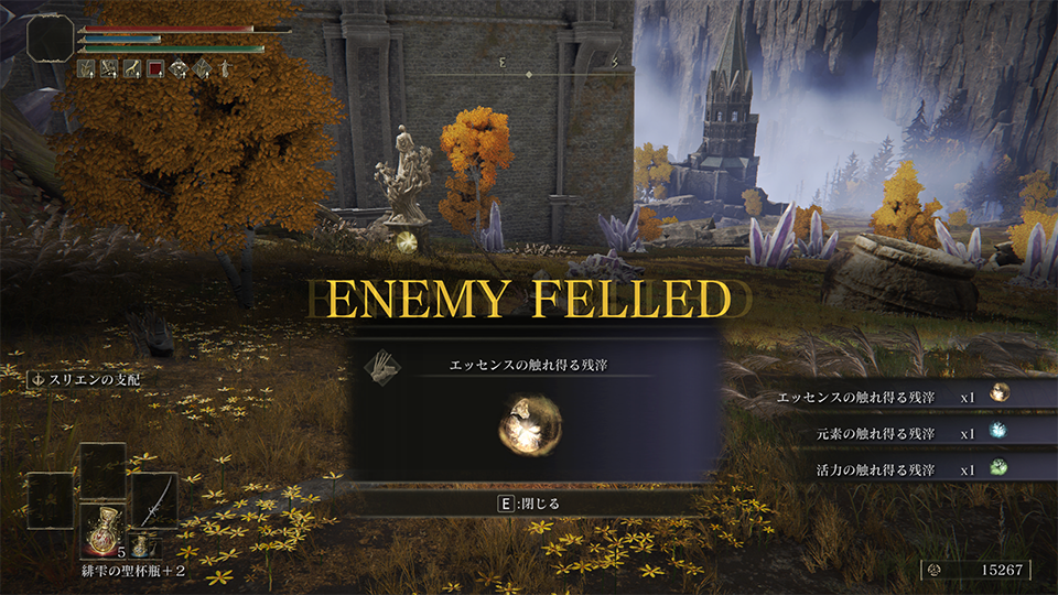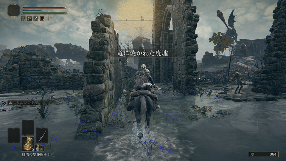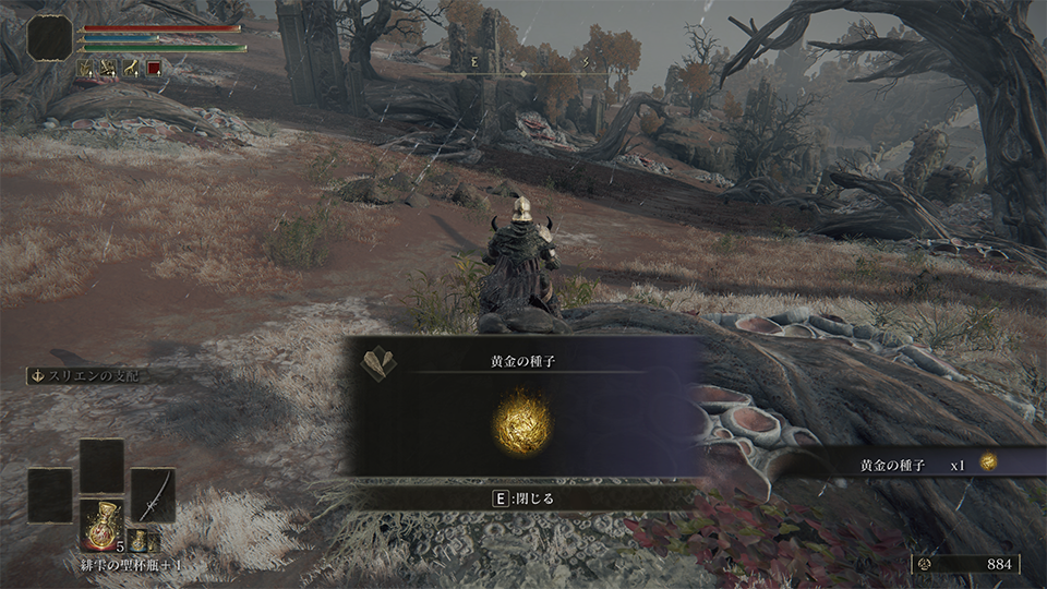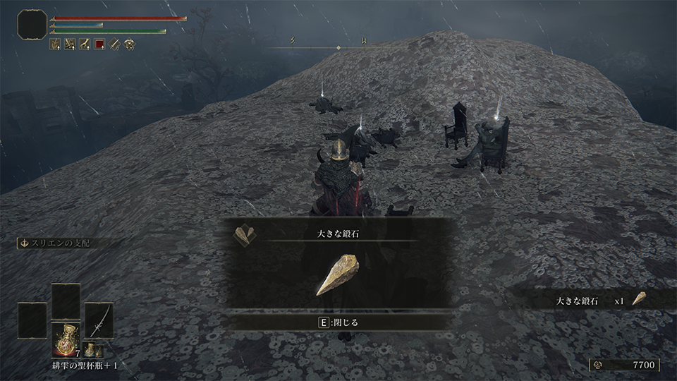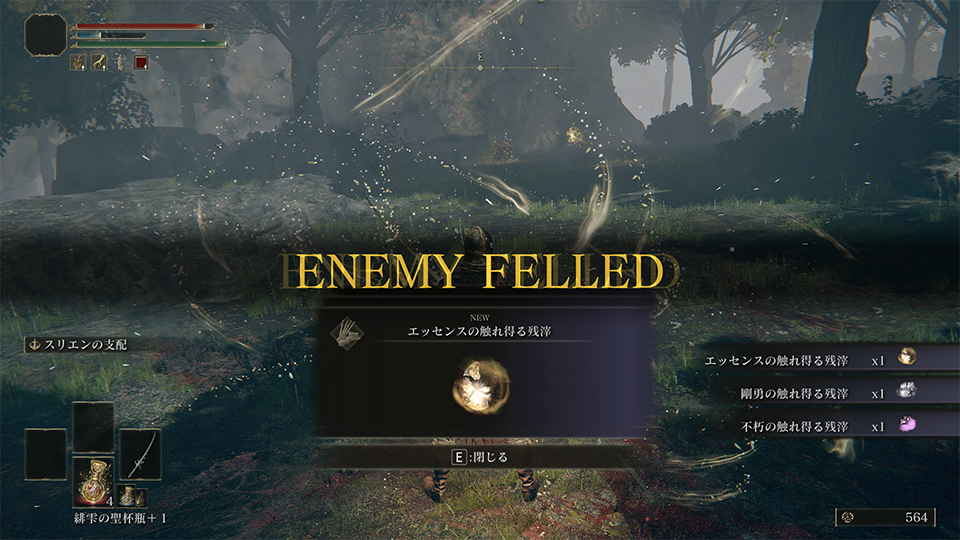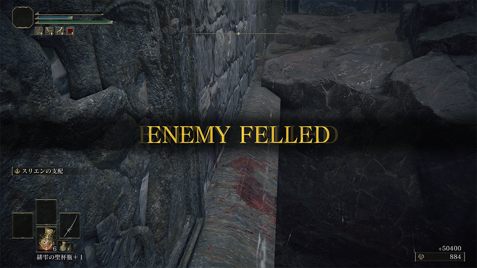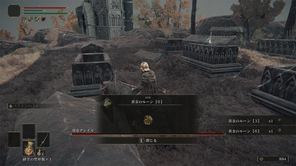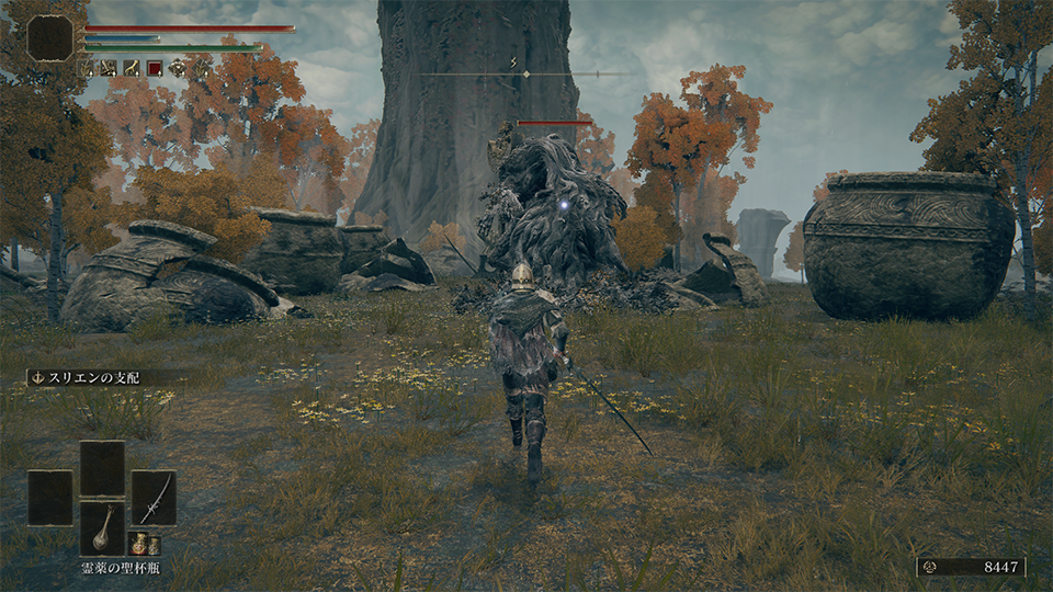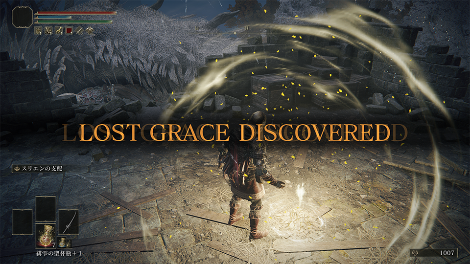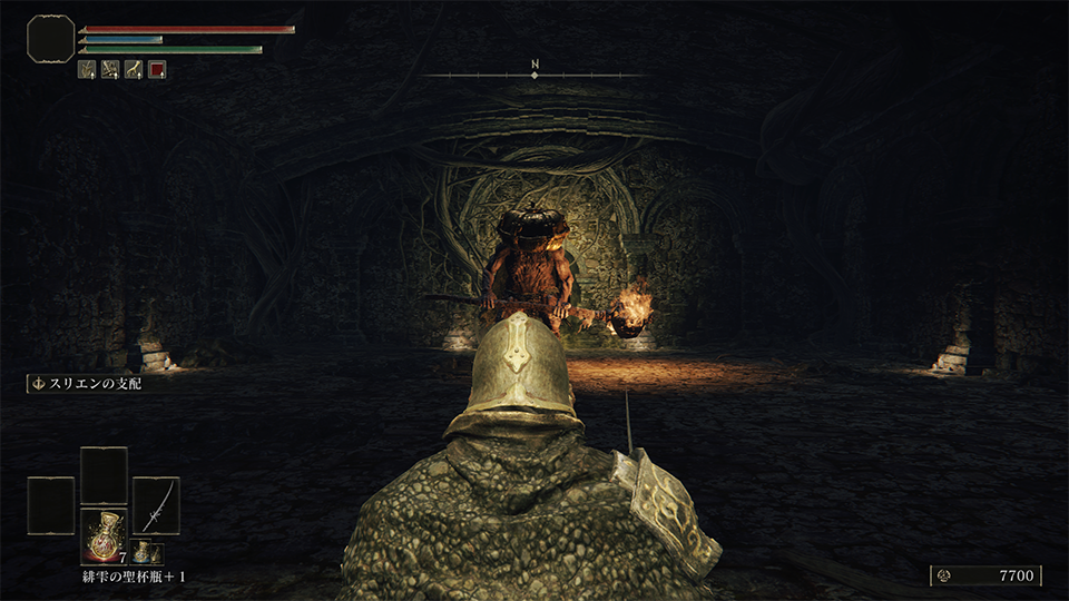 ここまでで聖杯瓶の強化が少しできたので、ようやく初戦闘