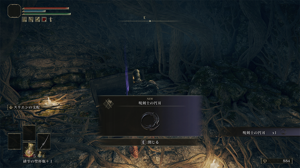 「竜に焼かれた廃墟」の地下で「呪剣士の円刃」を入手