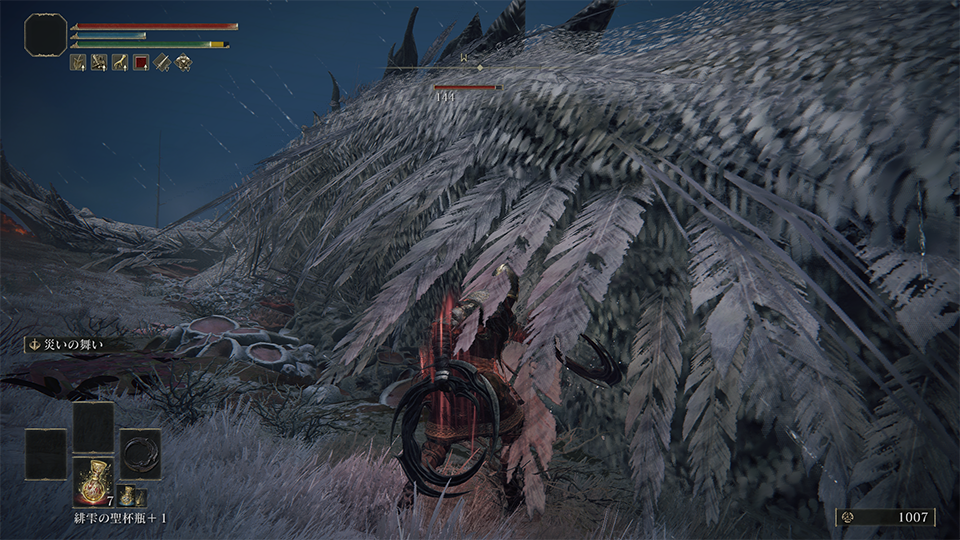 そんな状況で輝くのが、「竜に焼かれた廃墟」で簡単に入手でき、かつ出血効果を持つ「呪剣士の円刃」