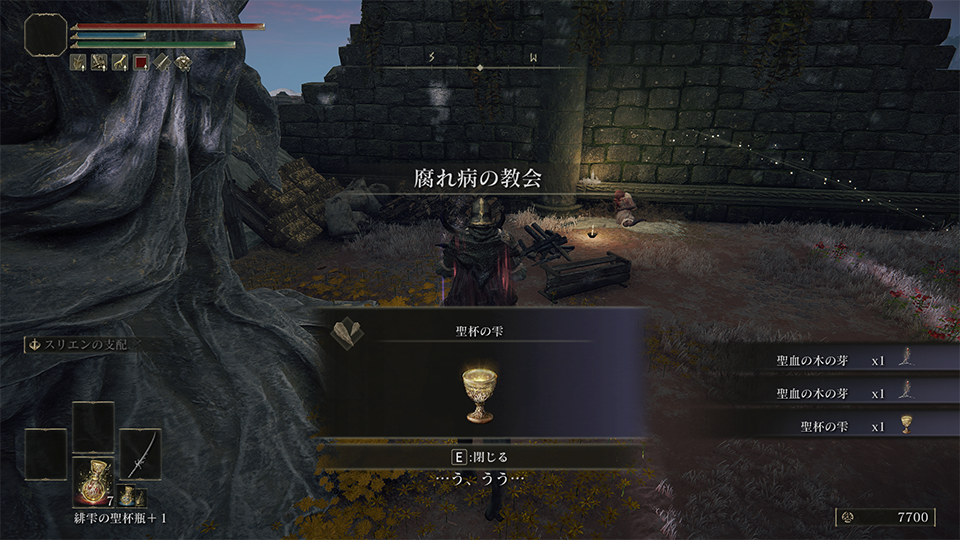まずは近くの「腐れ病の教会」で「聖杯の雫」を回収