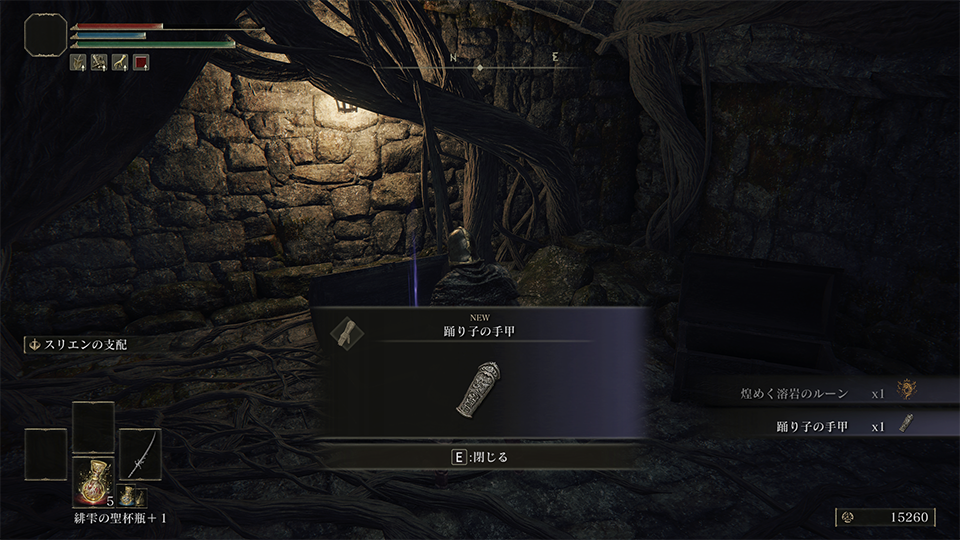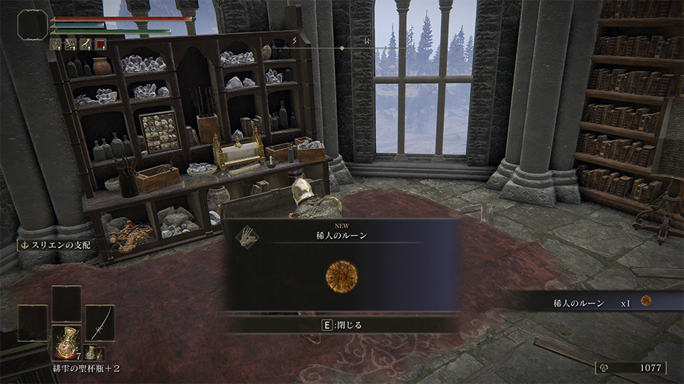 ここは上階に登るのにちょっと苦労するけど、宝箱には「稀人のルーン」