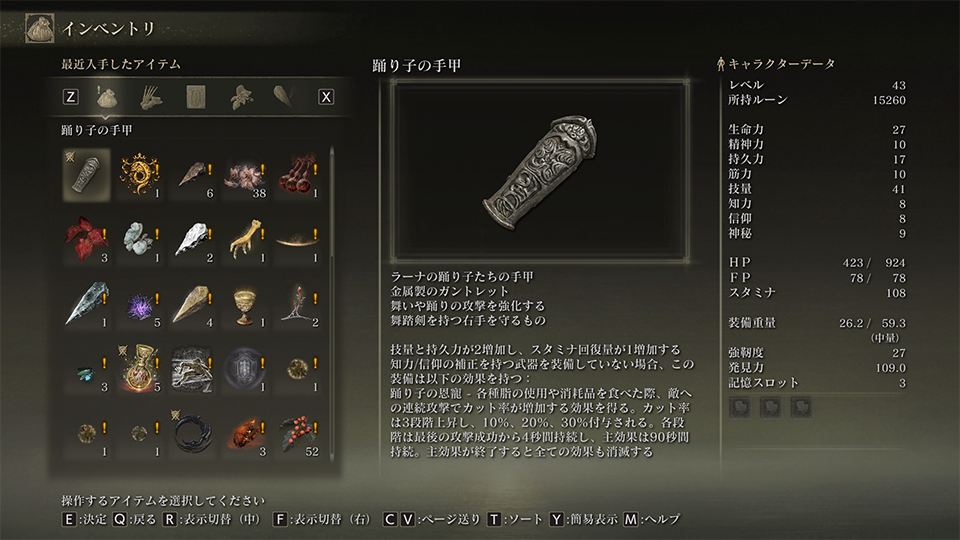 逆手剣も技量ビルドとは相性がいいんですが、残念ながら今回はメイン武器としては使いません