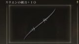初期武器には知力・信仰補正のない技量特化の両刃剣「スリエンの剃刀」を持っています