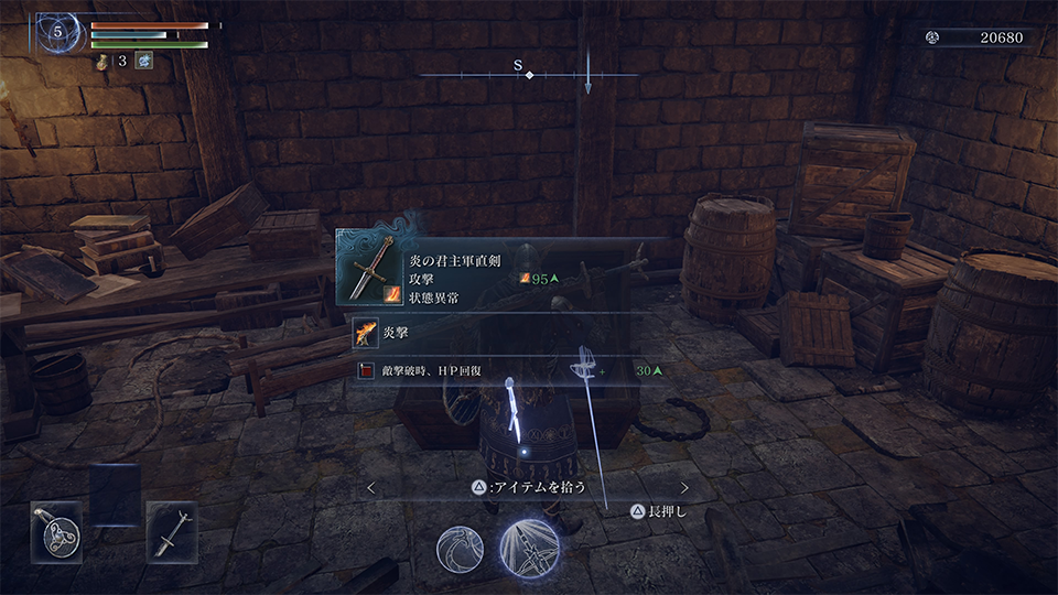 フロム特有のゲームの操作説明付きのチュートリアルエリア
