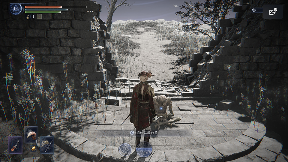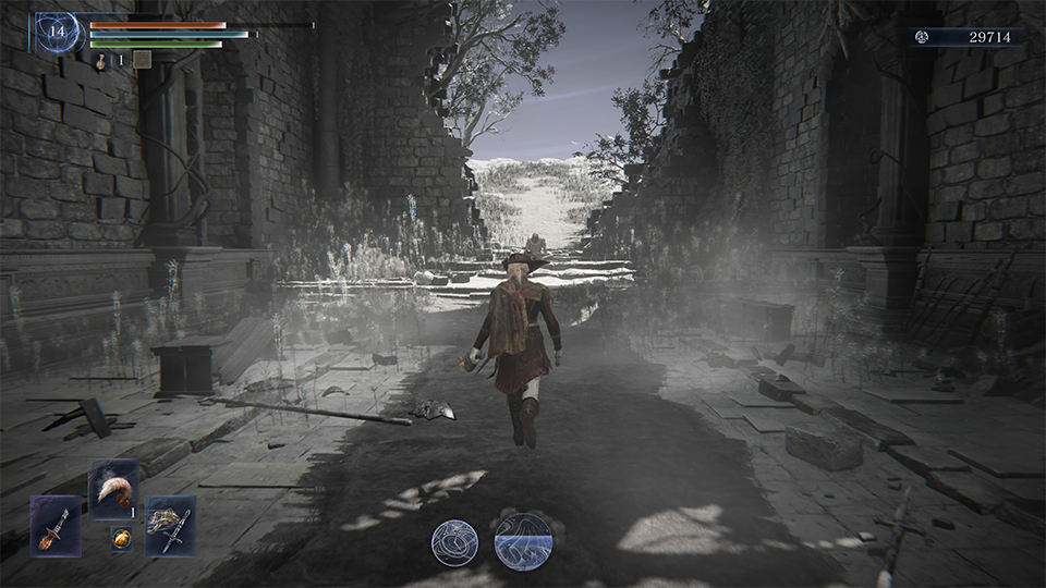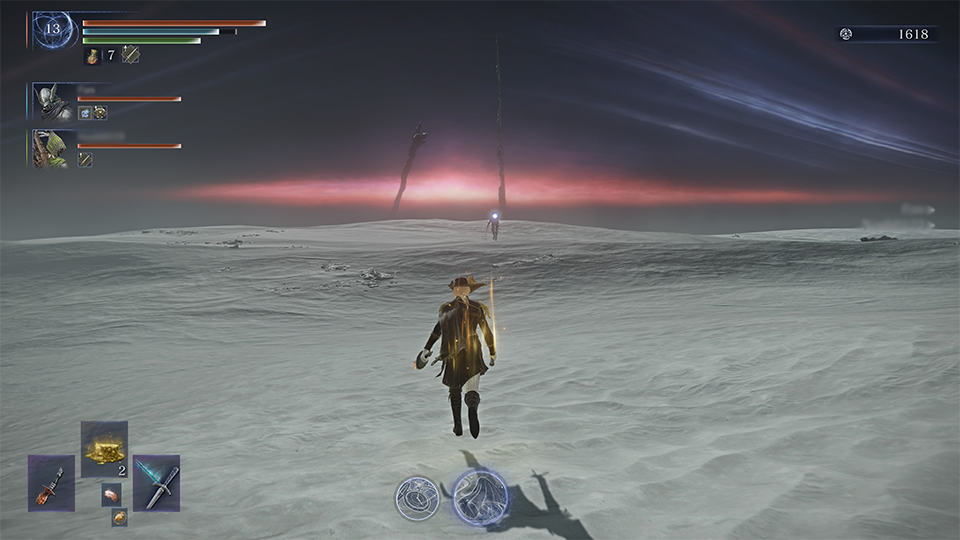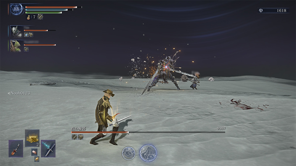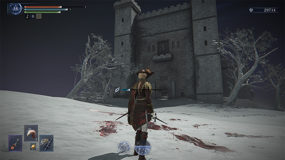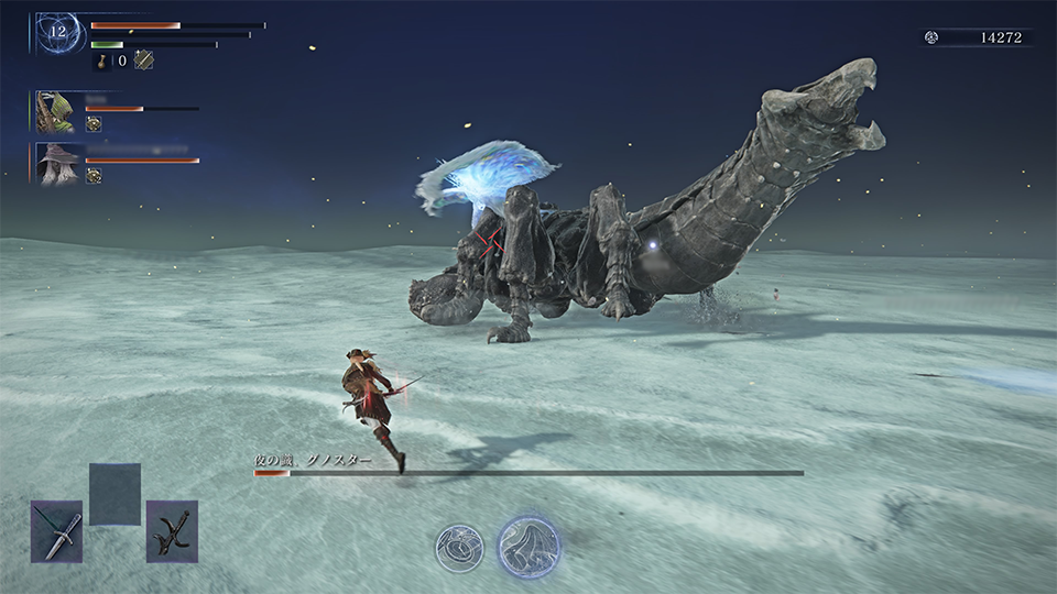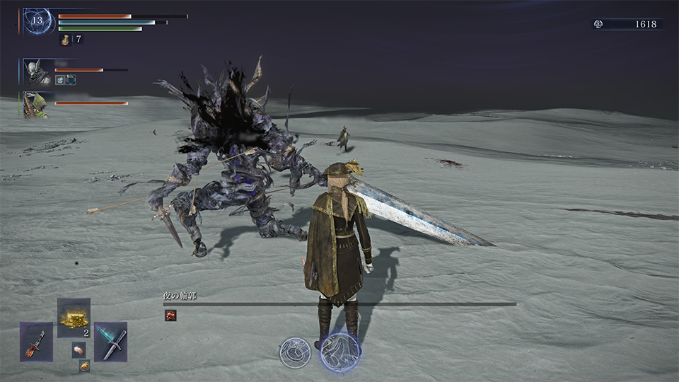 その部分で、「黒き刃」戦技「死の刃」は遠距離からチクチク、しかも良い火力でHPを削っていけるのでかなり有効だった